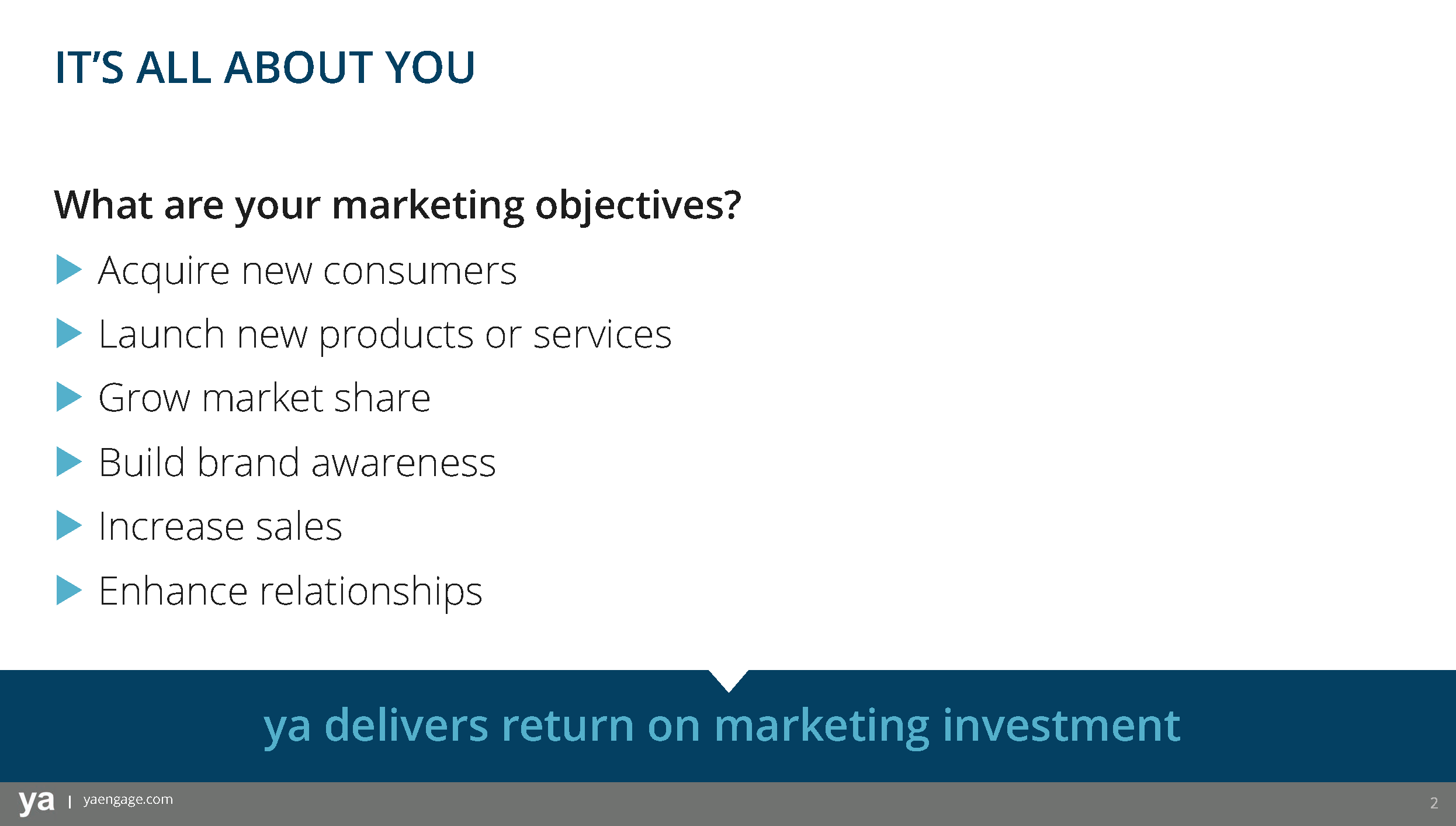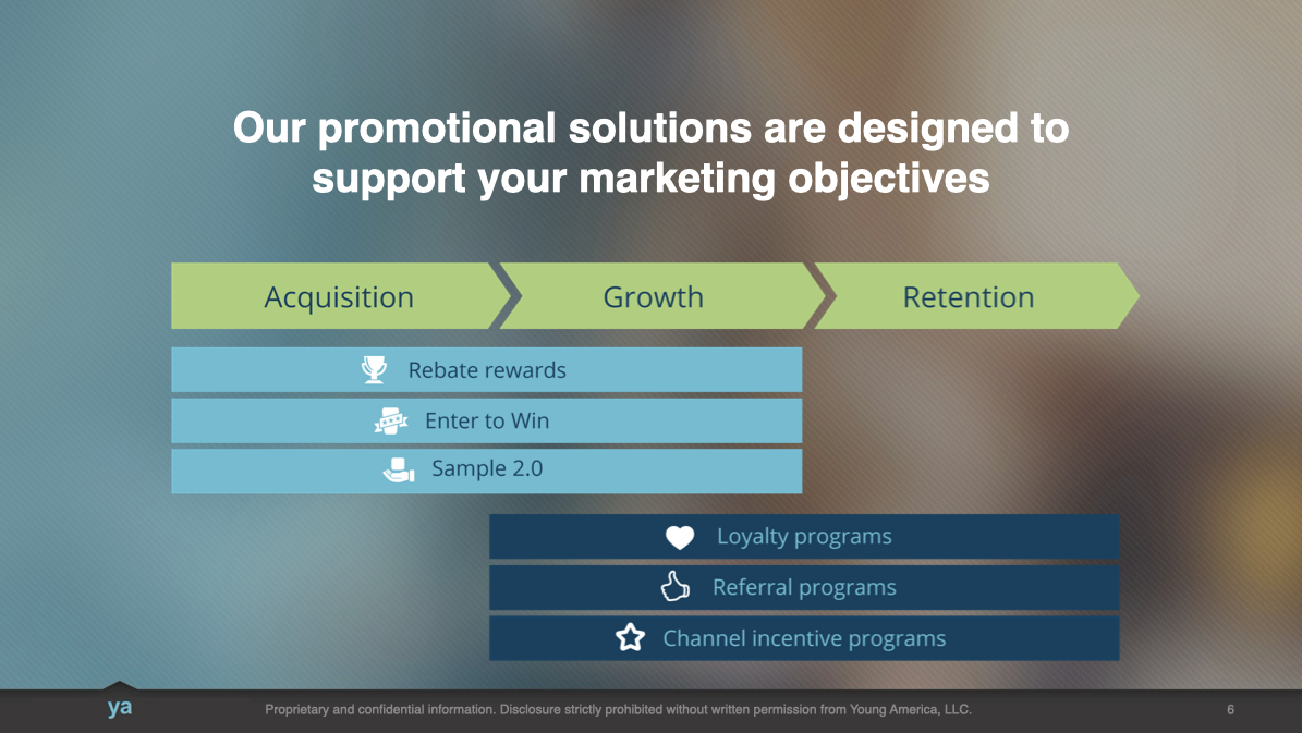 ya, a promotions agency known for its expertise in coupon redemptions, needed a compelling PowerPoint capabilities deck to help their sales team attract and convert new clients.